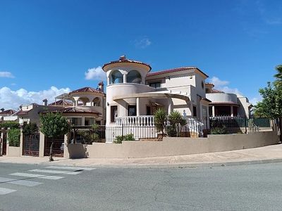 This is a very well presented detached property located in a quiet residential area, and situated on a large corner plot. Accommodation of approx. 100 m² is distributed over two levels as follows. On the ground floor there is a spacious lounge/diner, a fully fitted kitchen with separate utility room, two bedrooms, and a fully tiled shower room. On the first floor there is a large master bedroom with mirrored wardrobe dressing area and an en-suite bathroom. On this level there is also a sunny rooftop terrace that has some splendid views of the surrounding area, and which benefits from a large pagoda that is partially enclosed with glass curtains creating an ideal space for outdoor leisure. Outside, there is a large front terrace that is perfect for outdoor dining, and also an off road parking space under a carport. The well maintained garden is laid to a mix of patio tile and decorative gravel, and there are some assorted plants and shrubs. To the side of the property there is access to the communal pool and recreation area. Additional features include; air conditioning, fireplace, built-in wardrobes, security grilles, and much more! This property is in excellent decorative order throughout, and is to be sold as fully furnished and equipped. Viewing highly recommended!